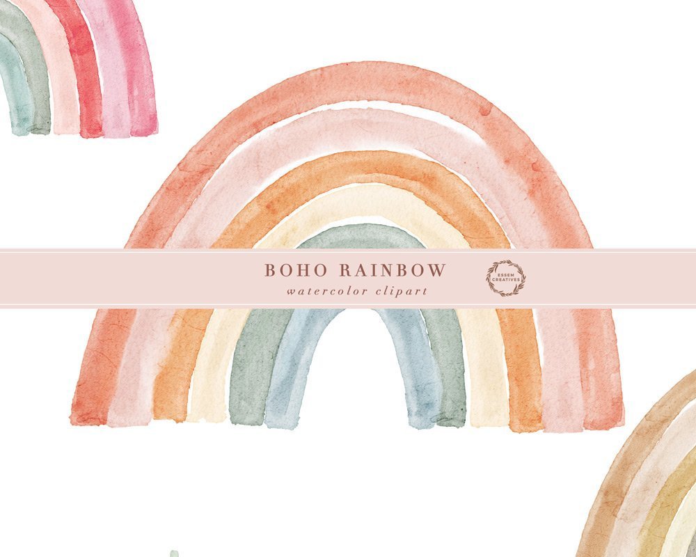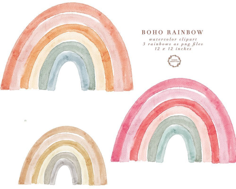 Boho Watercolor Rainbow Clipart, Sublimation PNG Clipart for Commercial Use
