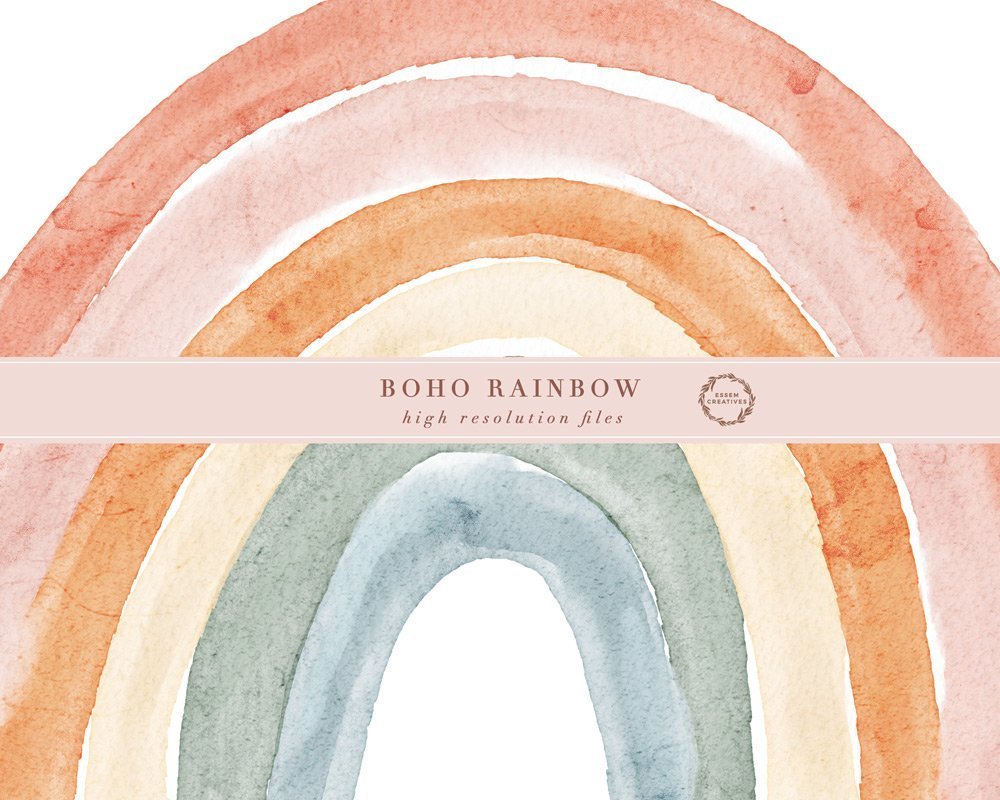 This boho rainbow clipart collection is perfect for modern and on trend baby shower and birthday party stationery, scrapbooking resources, wall art decor, logo design & branding, social media graphics, as sublimation prints on things like t-shirts, mugs, pillows, etc.