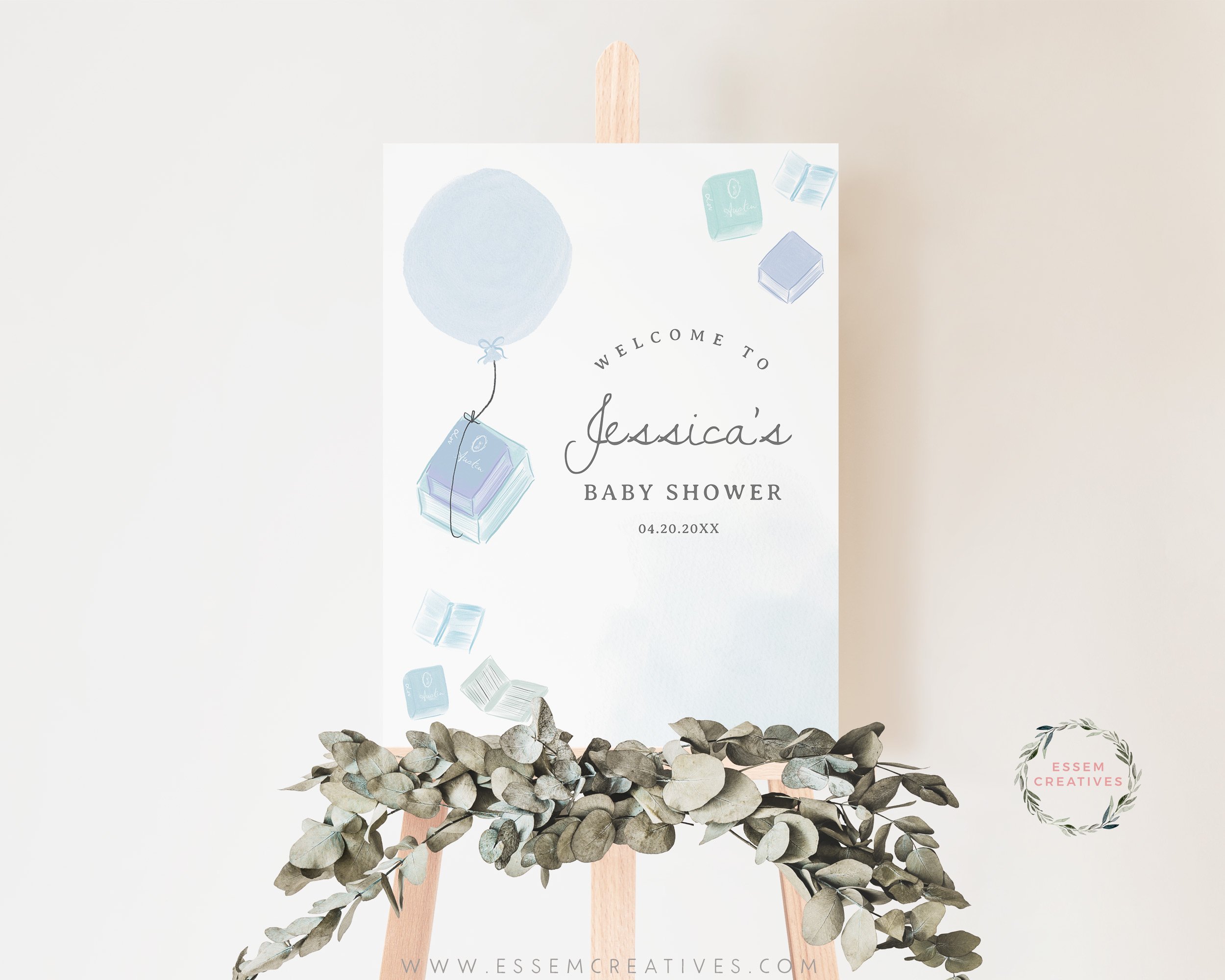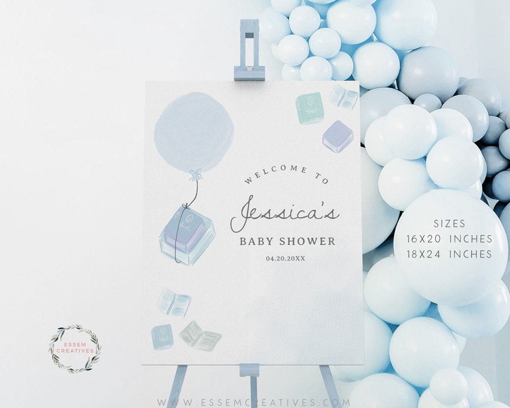Boy Baby Shower Welcome Sign Template, Blue Watercolor Books Theme Baby Shower Welcome Sign, Printable Template A New Chapter Begins Welcome Card 497