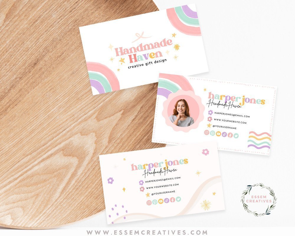 Cute Business Card Template, Rainbow Boho Business Card Design, Printable Canva Editable Template, DIY Calling Card, Feminine Branding 506