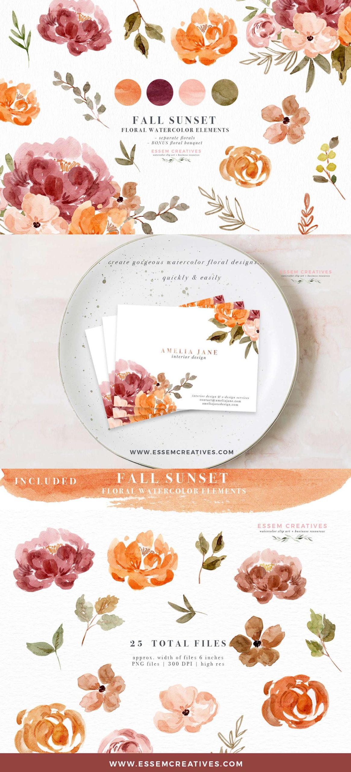 This set is perfect for fall and winter watercolor floral designs. Also included is a BONUS floral bouquet which can be used for logo designs, invitatoins, scrapbooking, and more.