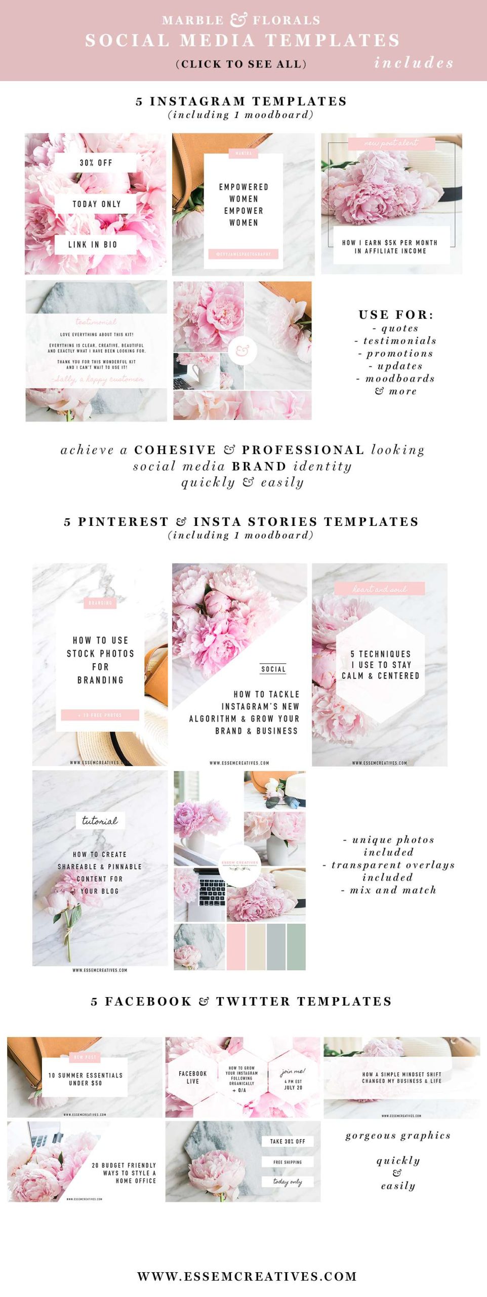 This Marble Floral Social Media Branding kit is a Mega Pack of content for small business owners.