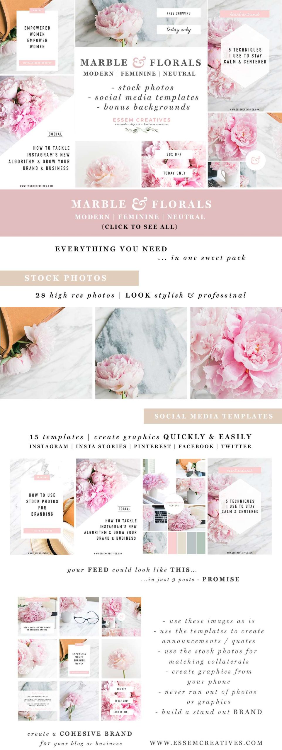 Why use this bundle of Feminine Stock Photos + Social Media Templates