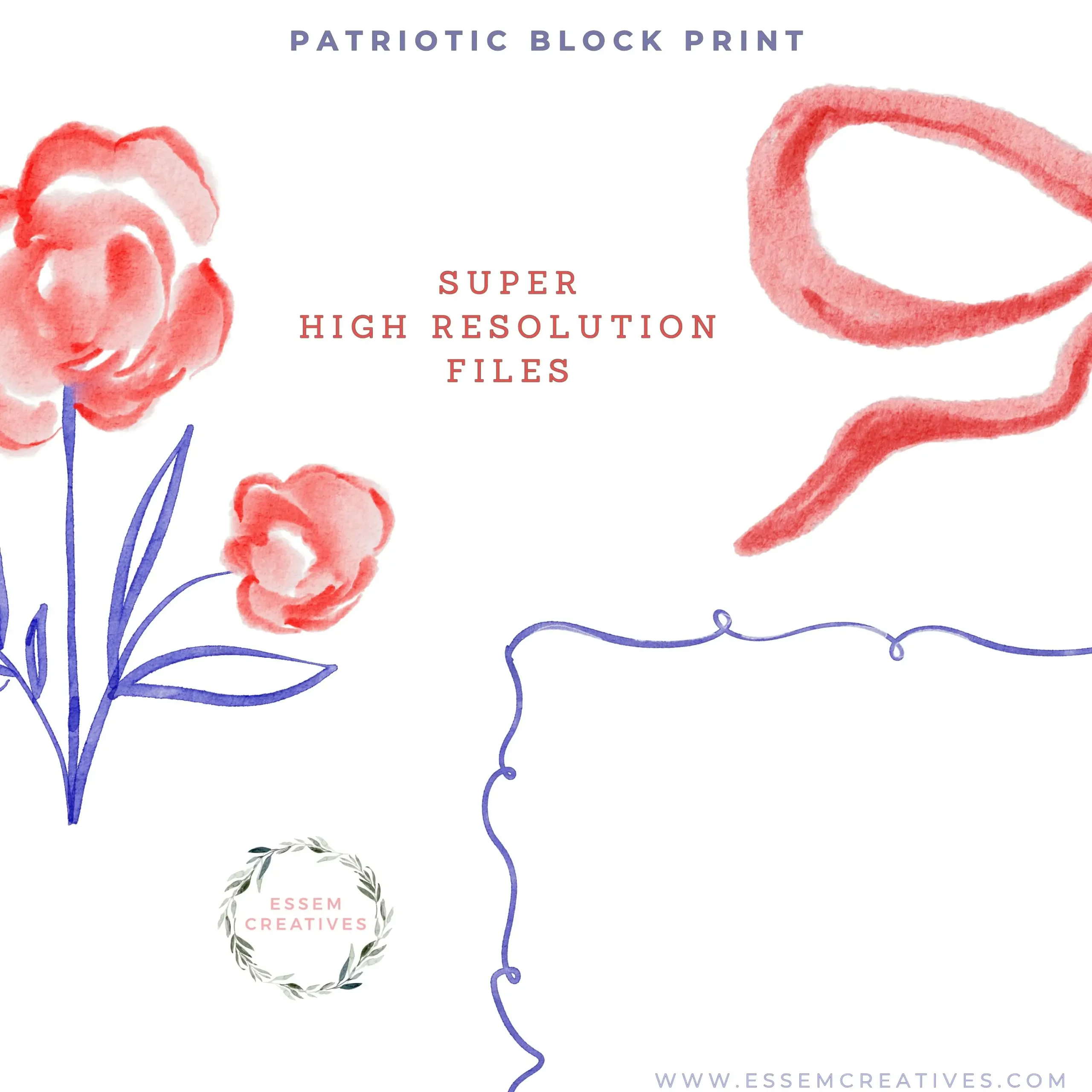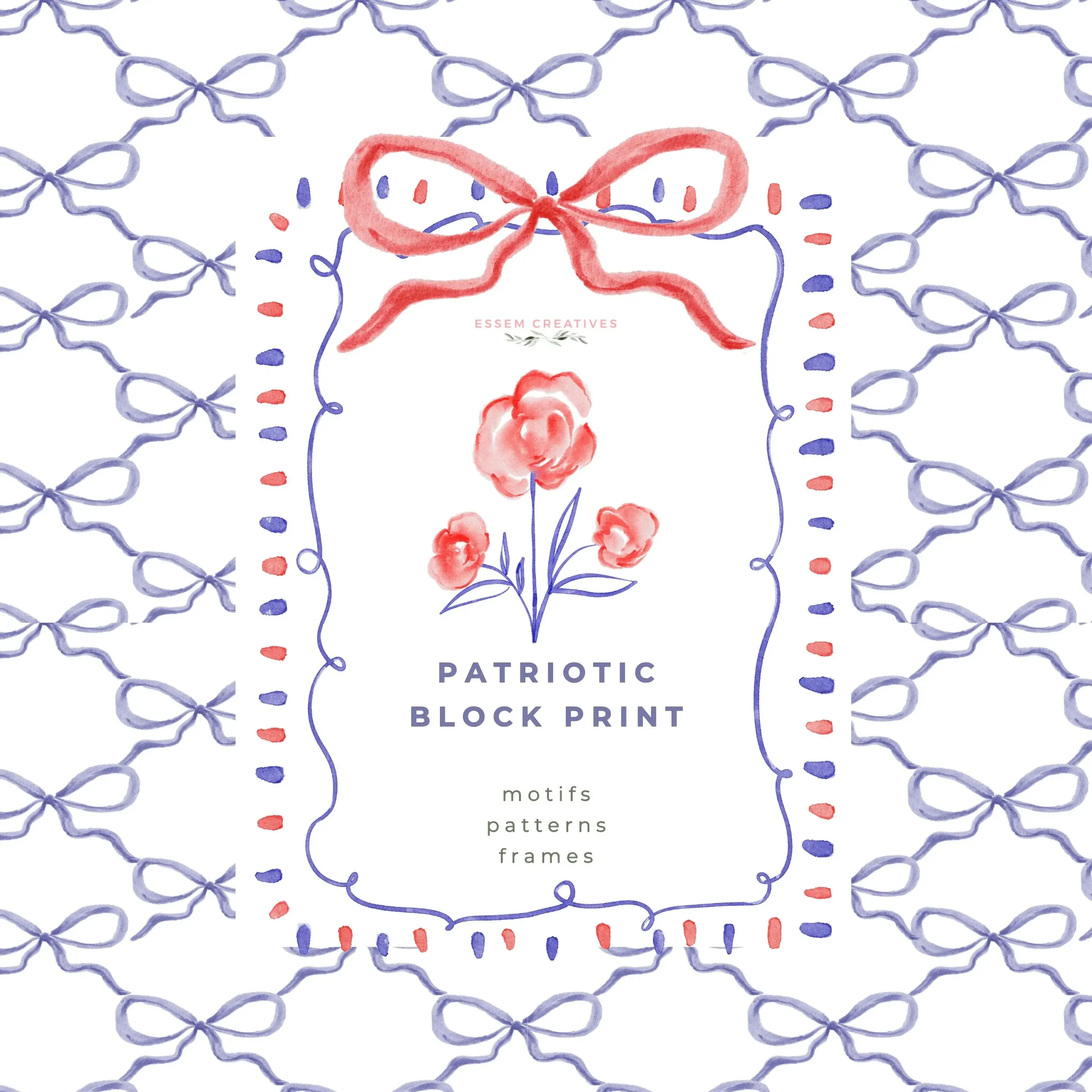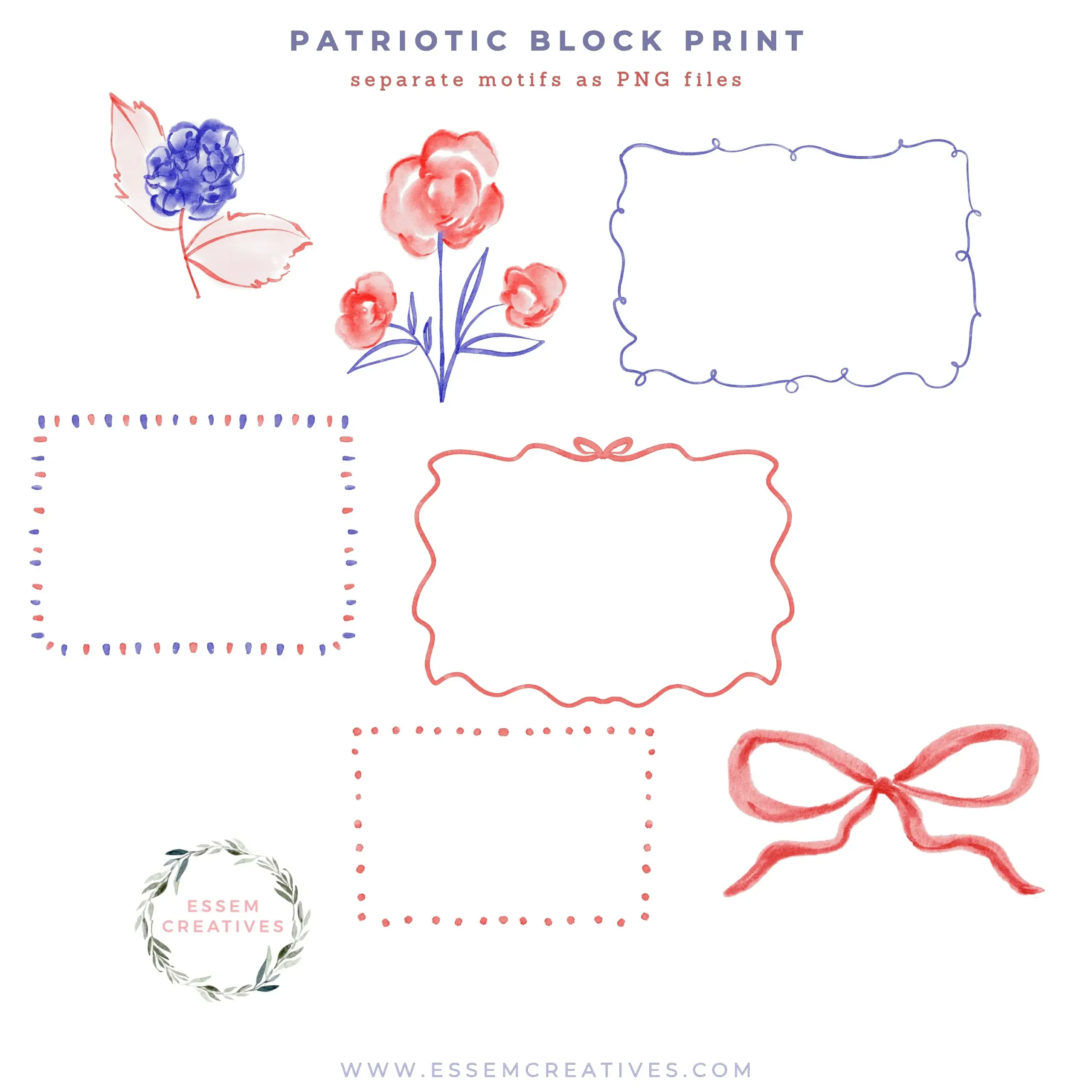 Patriotic Block Print is a set of beautiful hand painted illustrations and PNG designs, seamless patterns and frames to help you design modern, professional assets quickly & easily.