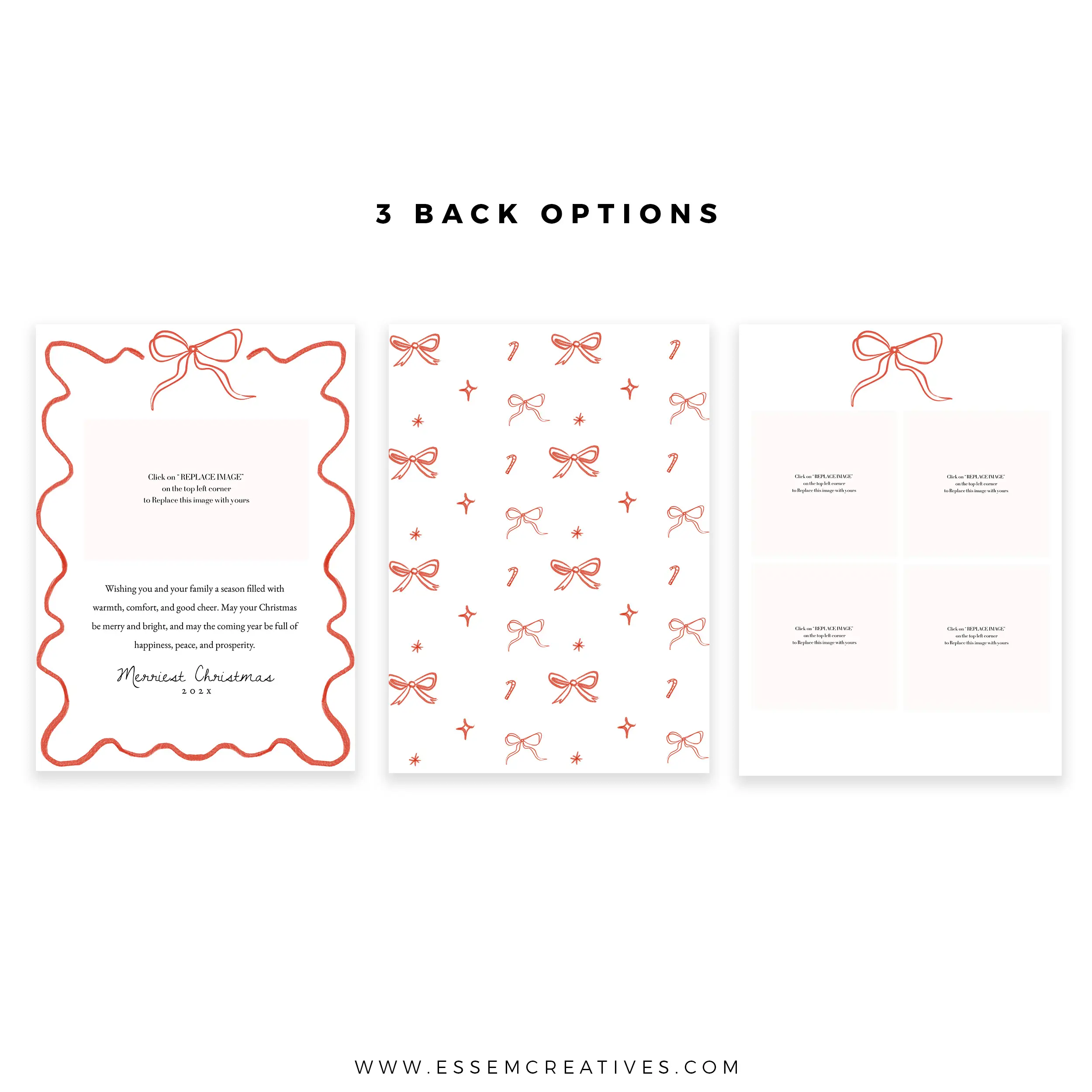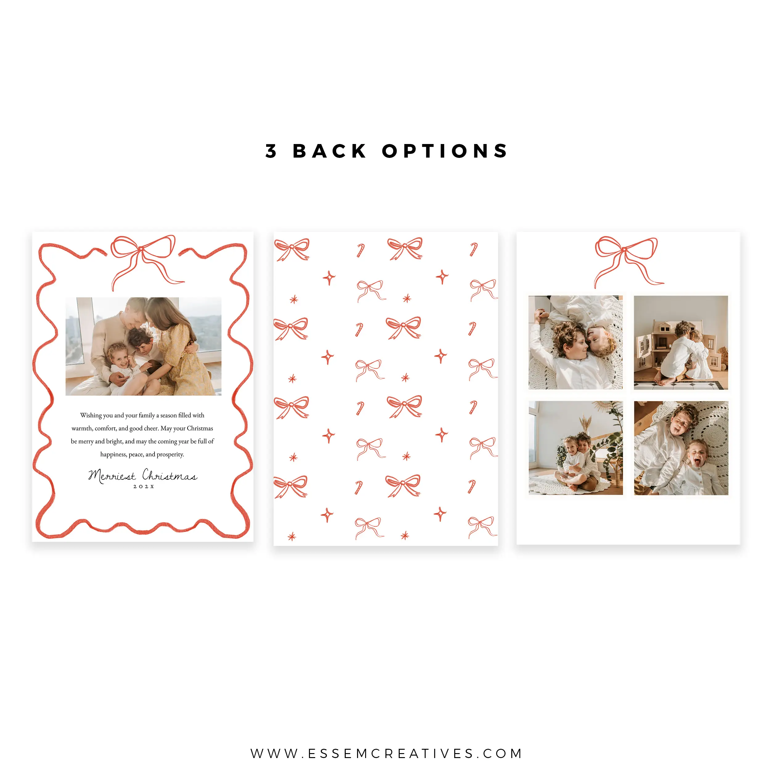 Printable Whimsical Bow and Wavy Border Christmas Photo Card Template, Editable Hand Drawn Red Ribbon Bow Doodle Holiday Card, Corjl 516