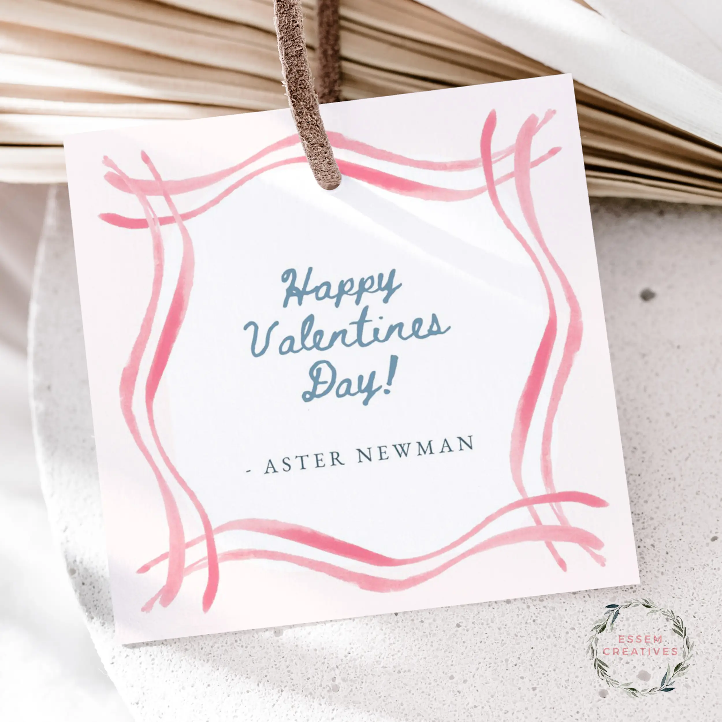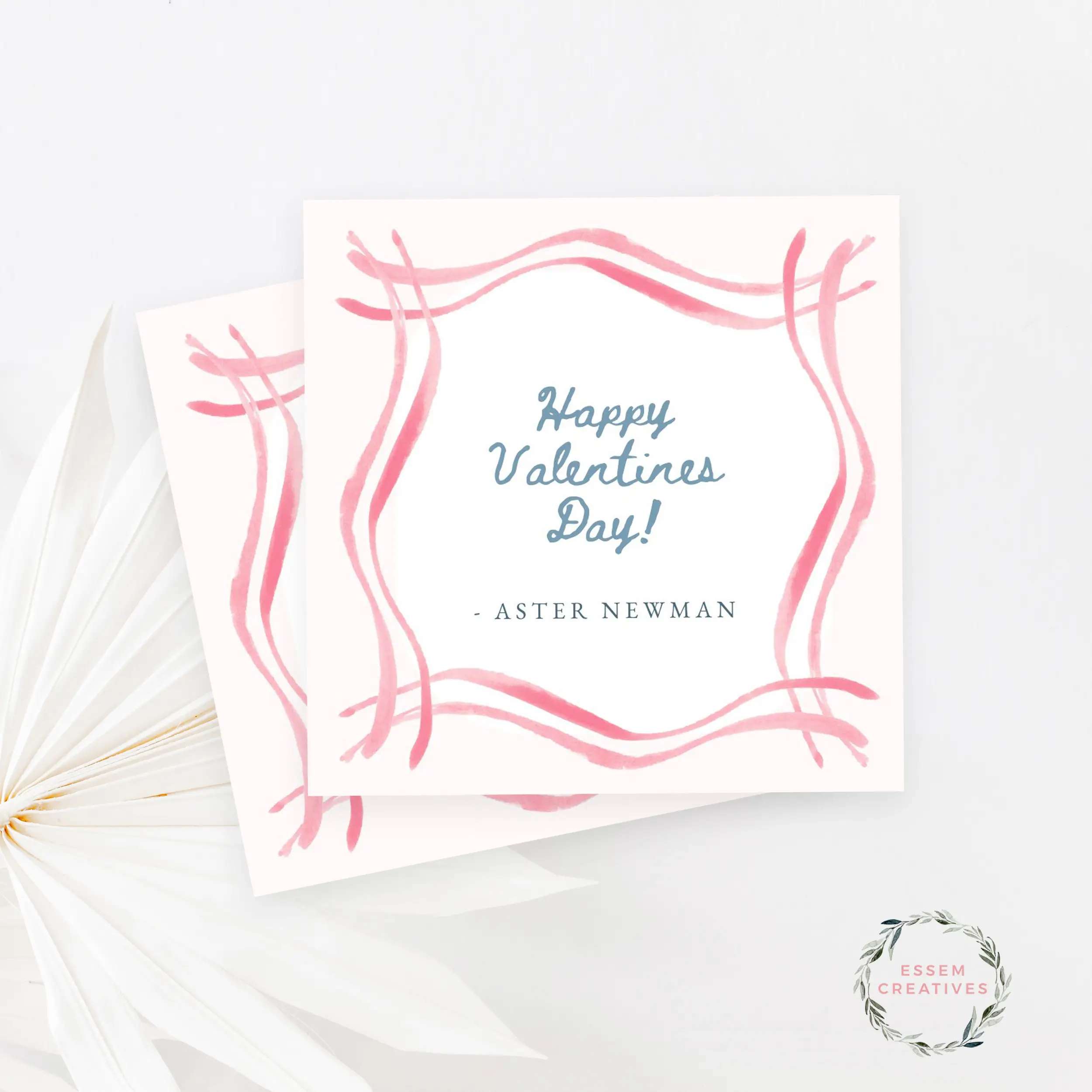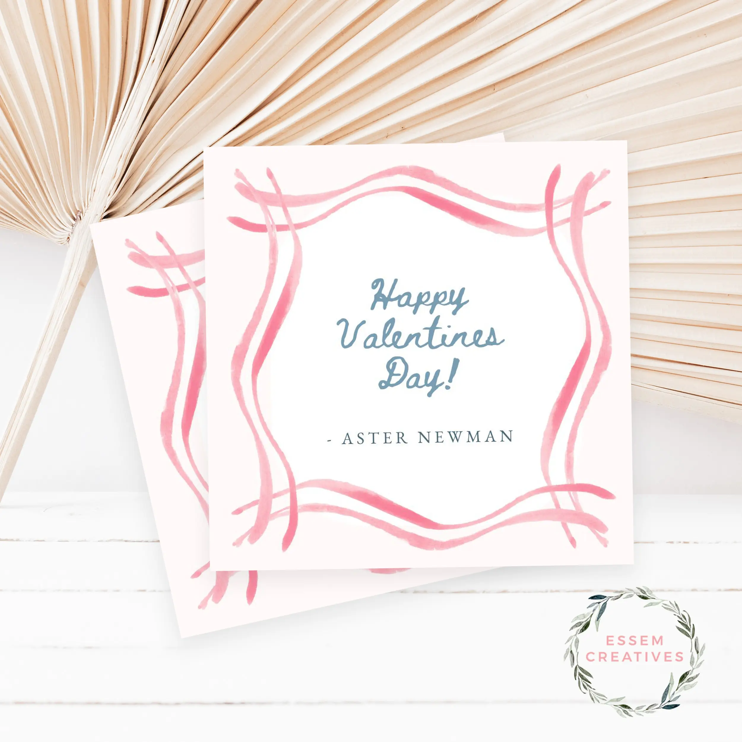 Wavy Border Valentine Gift Tag Template, Whimsical Dainty Editable Hand drawn Gift Label for Preschool School Classmates edit with CANVA
