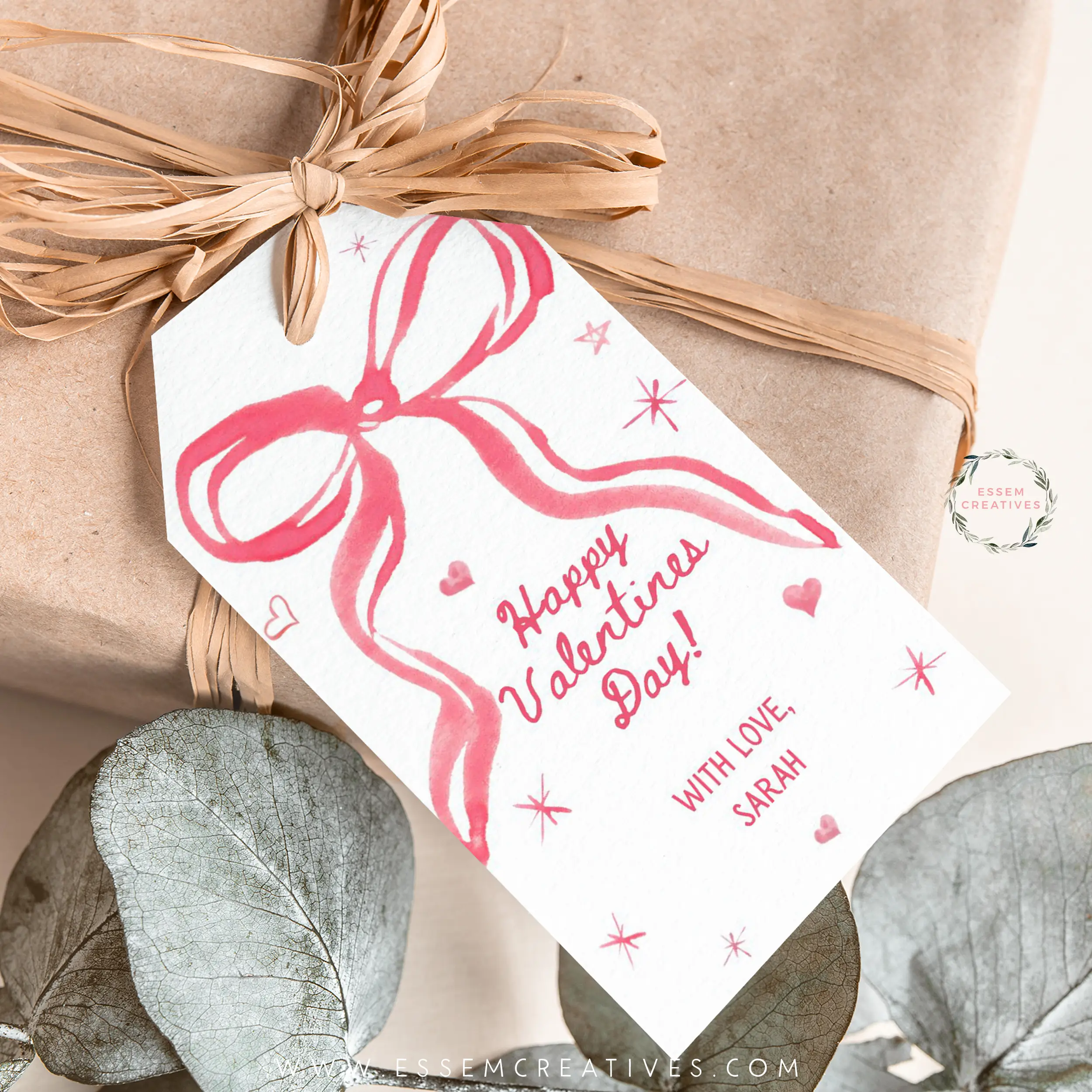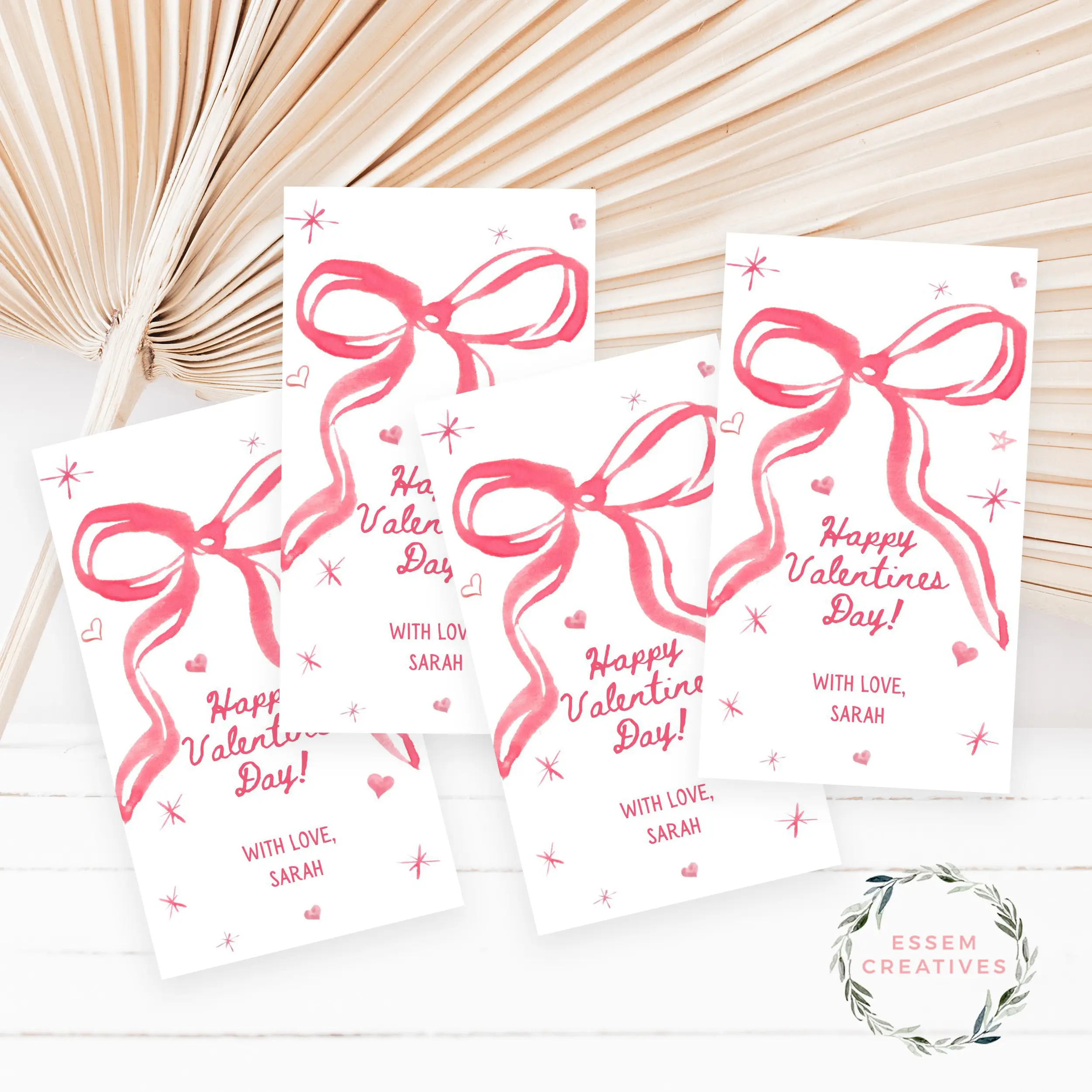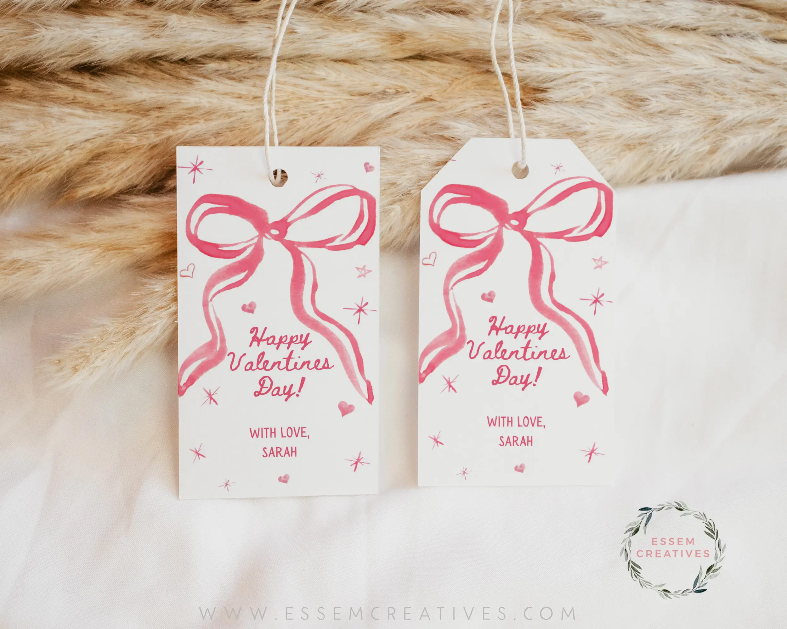 Whimsical Bow Valentine Gift Tag Template, Hand Drawn Dainty Editable Gift Label for Preschool School Classmates Gifts | edit with CANVA 520-6